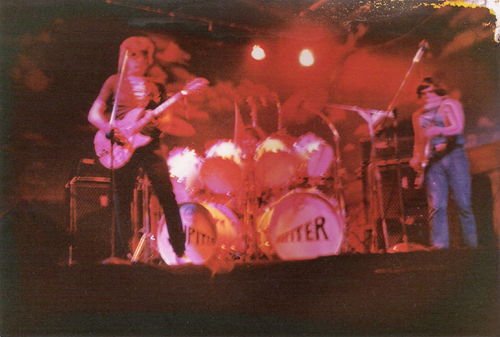 JUPITER -- a power-trio formed in the mid-1970's, featured -- Lorenzo Gigliotti - electric 12 string and vocals; Jay Perris (Juarez) - drums and vocals; Tim Chaplin - bass and vocals. In their first years the band played cover tunes and worked steadily playing any gig that materialized. They played bars, clubs, school dances, banquets, special occassions --even military bases -- anything that paid. They also played a lot of fraternity parties -- beer-busts that sometimes swelled to over a thousand... Fraternaties always paid nicely... But the well-paying music circuit came to an end in1978, when the disco genre put a strangle hold on everyting. Suddenly Jupiter, as well as many, many other bands found it much harder to get paying jobs because everyone wanted DJ's...